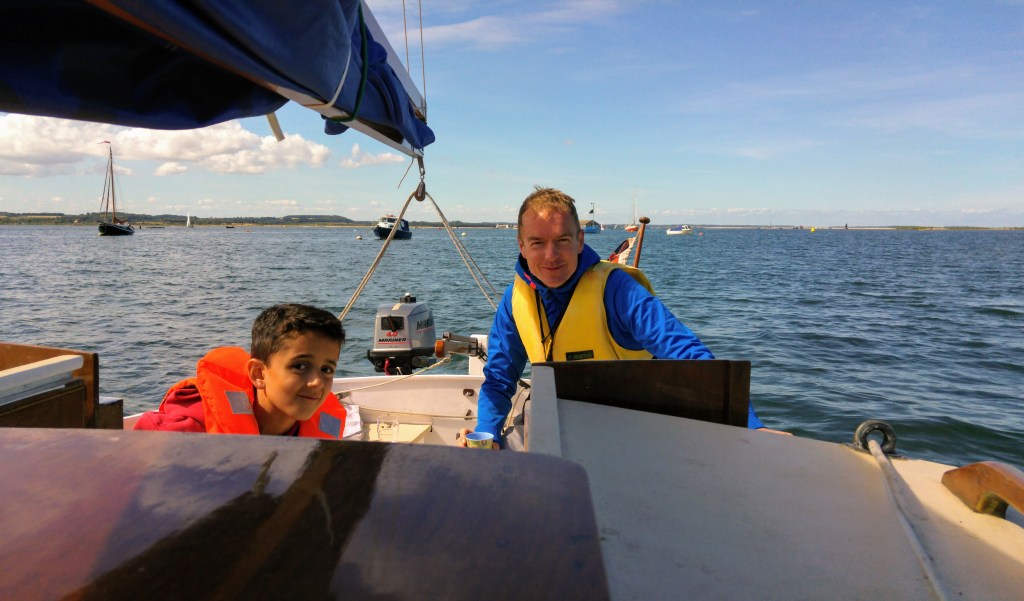 My brother Stefan at the helm, who sailed on Snipe as a child in the early 80s, returning with his own son Tomas for a sail in Blakeney over 35 years later.