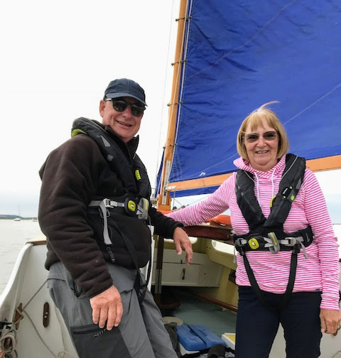 My uncle and aunt, David and Deborah Faulder, who sailed on Snipe in the 70s and 80s, back on-board in 2018 after her restoration for a sail in Blakeney Harbour.