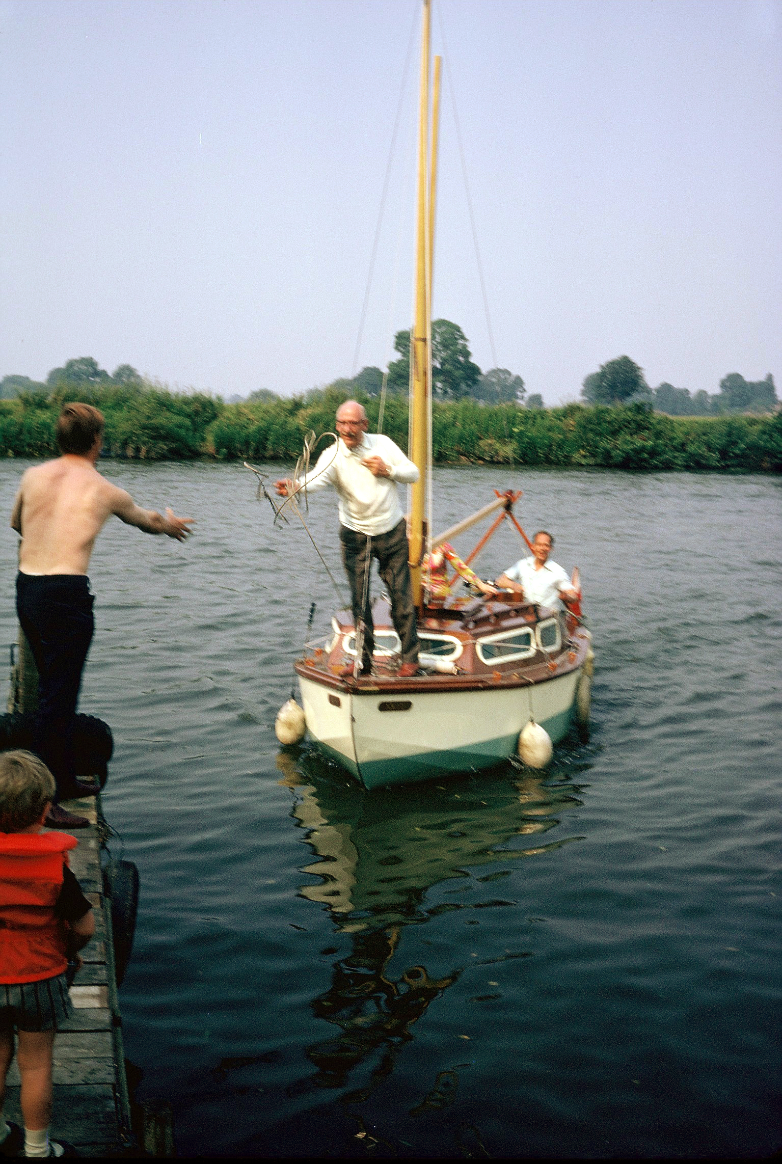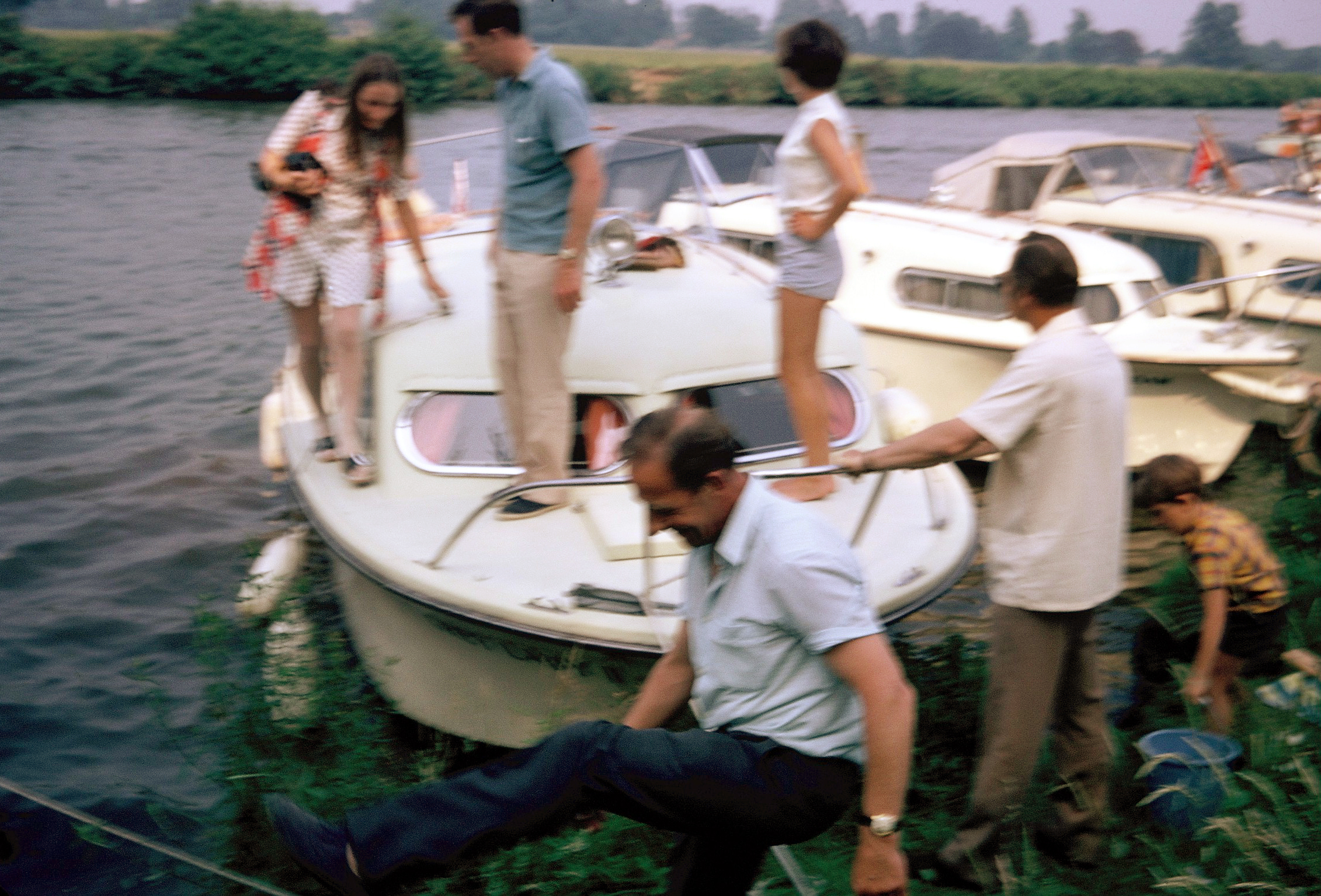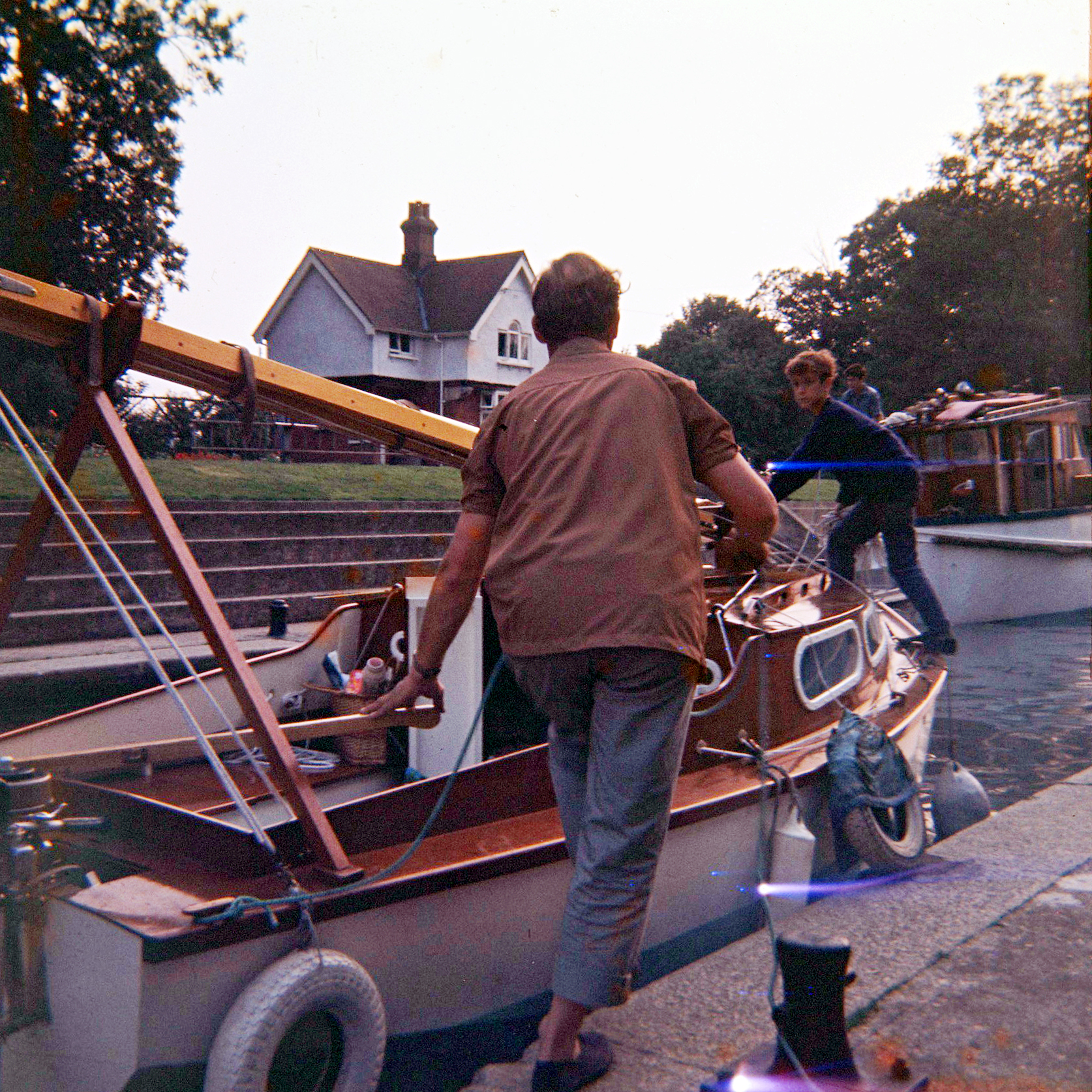 Snipe VII was launched on 26th September 1970 at the Waterside Inn, Bray on the River Thames. These photos – which we believe were mainly taken by my grandma – Madeleine Faulder, were recently converted to digital from 35mm slides found in my mum’s loft. They show Snipe under construction in grandpa’s garage, the launch day itself and some early forays on the Thames.